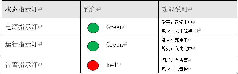 下表顯示充電機(jī)工作狀態(tài)